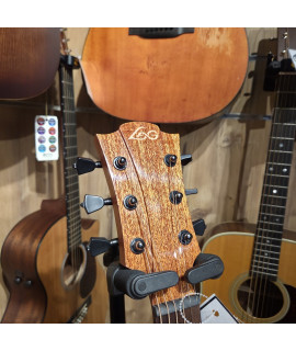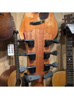 La table massive en Cèdre Rouge du Canada, qui lui procure une excellente projection, est dotée d'un coloris Red Burst en vernis brillant qui s'harmonise à la perfection avec le dos et les éclisses en Acajou Khaya finition Cognac Brown brillante. Particularité supplémentaire cet Acajou Khaya est également décliné sur la fameuse la tête Lâg en finition brillante.