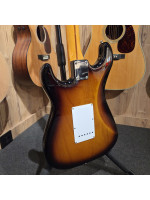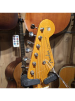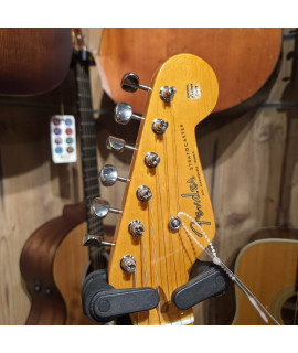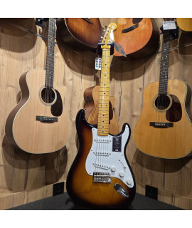 Célébrez la naissance d’une icône avec l’American Vintage II Stratocaster 1954 70e anniversaire. Cette guitare au charme vintage présente un corps constitué de deux morceaux de frêne recouverts d’un vernis nitro-cellulosique. Grâce à son manche en érable fait d’un seul tenant, à son rayon de touche de 7.25” (184 mm) et à ses frettes vintage, vous profiterez à votre tour de ce toucher particulièrement agréable que les guitaristes apprécient depuis des décennies. Ses micros à simples bobinages Strat® 1954 70e anniversaire produisent des sonorités qui vous replongeront tout droit dans cette merveilleuse décennie. Poussez-les et écoutez comme ce son brillant devient particulièrement mordant. La guitare présente également un chevalet fidèle au modèle d’époque, avec un vibrato synchronisé, un bloc en acier laminé à froid et des pontets en acier embouti, ainsi que des mécaniques ”Fender Deluxe” alignées et une plaque de protection à pli simple. Les caches des micros, l’embout du sélecteur de micros et les boutons des potentiomètres sont fidèles à ceux de la Strat historique. La guitare est livrée dans un étui en tweed de style vintage, dans lequel vous trouverez d’ailleurs quelques jolies surprises. Ce modèle en édition limitée reproduit tout ce qui a fait la renommée de la Stratocaster originale. Il ravira toutes et tous les collectionneurs(ses) et fans de Strat.